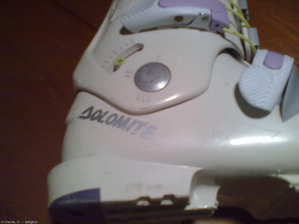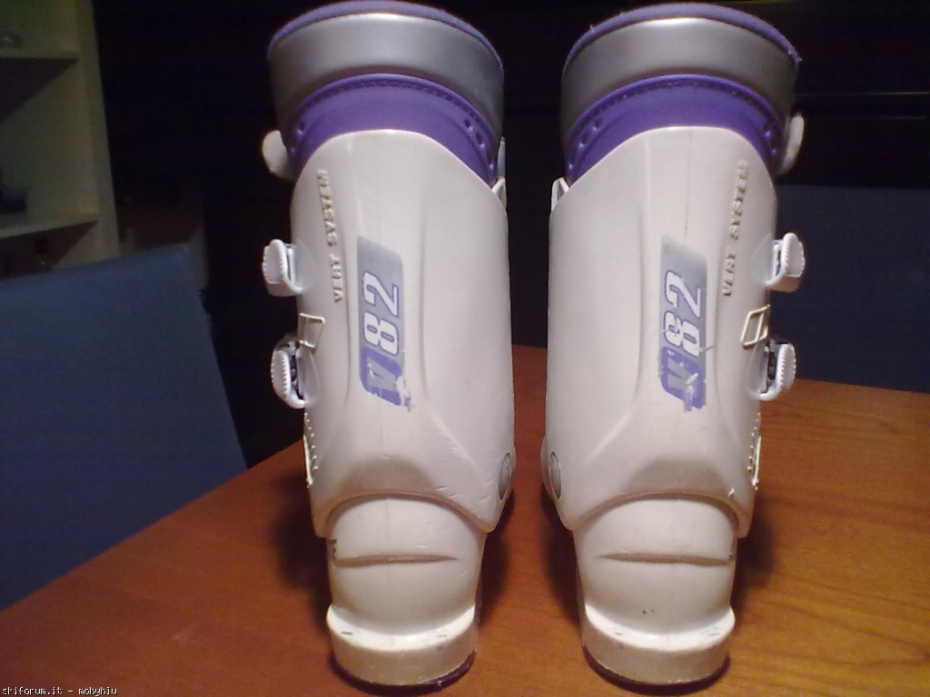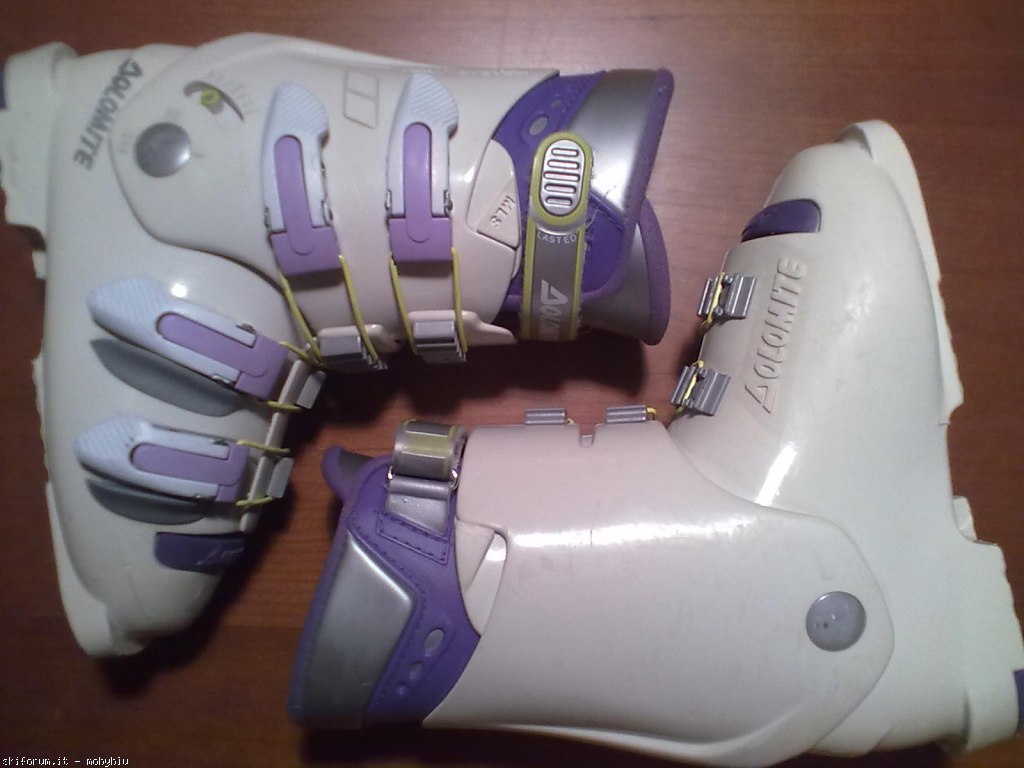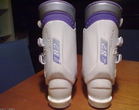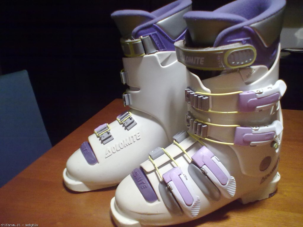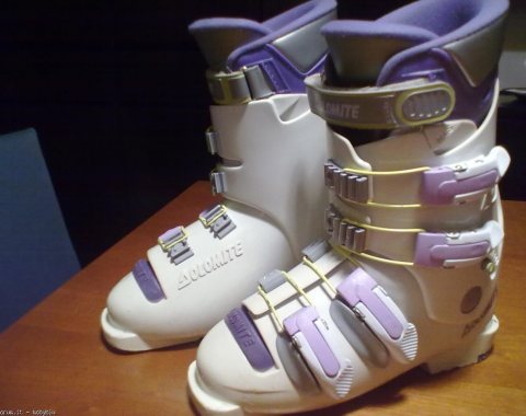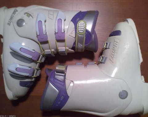 Scarponi da sci junior marca Dolomite modello Vertical System V82, misura 22,5 corrispondente al n. 36 (misura scafo esterno 282 mm.), chiusura con 4 comodi ganci in materiale plastico/metallo + fascetta in velcro, imbottitura interna confortevole. Tenuti bene.