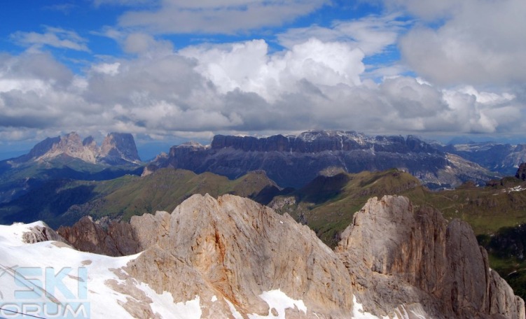 La cima di Portavescovo ad Arabba è invece il luogo giusto per ammirare le più importanti cime delle dolomiti orientali. A sud sono visibili il gruppo della Marmolada, il Piccolo e il Grande Vernel. A est appaiono all’orizzonte la cima del Col di Lana mozzata da una mina nel 1916, il Nuvolau, l'Averau, la Croda da Lago, il Sorapiss, l'Antelao e l’imponente Pelmo. A nord si possono osservare il Gruppo del Sella con la sua vetta più alta, il Piz Boè, il massiccio del Puez, il Sasso della Croce; il Lagazuoi e le Tofane. A ovest si possono infine intravedere il Catinaccio e il gruppo Sassolungo.