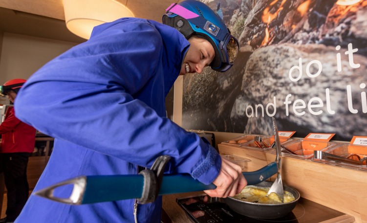 A seguire, una Champions Breakfast a buffet ricca e nutriente ogni mattina, con particolare attenzione ai prodotti del territorio di Livigno e la possibilità di prepararsi in autonomia uova o centrifughe rinfrescanti ed energetiche, proprio come a casa.