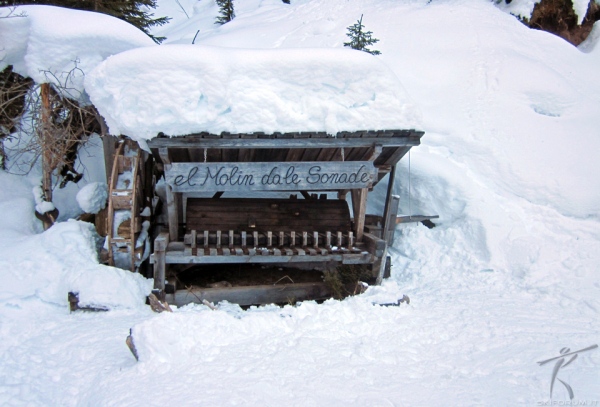 [i]El Mulin da le Sonade: foto del "carrilon di legno" che si incontra durante la discesa per la Via del Bosco.[/i]