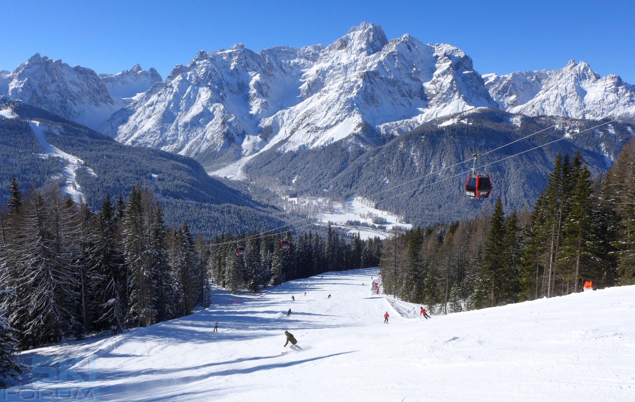 La pista Tre Cime nasce nella stagione 2014/2015 in seguito al collegamento tra le skiaree della Croda Rossa e del Monte Elmo.