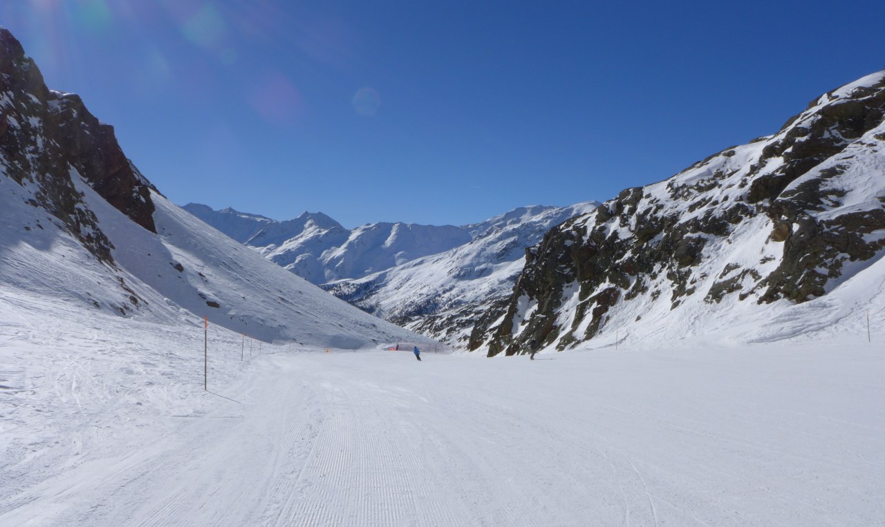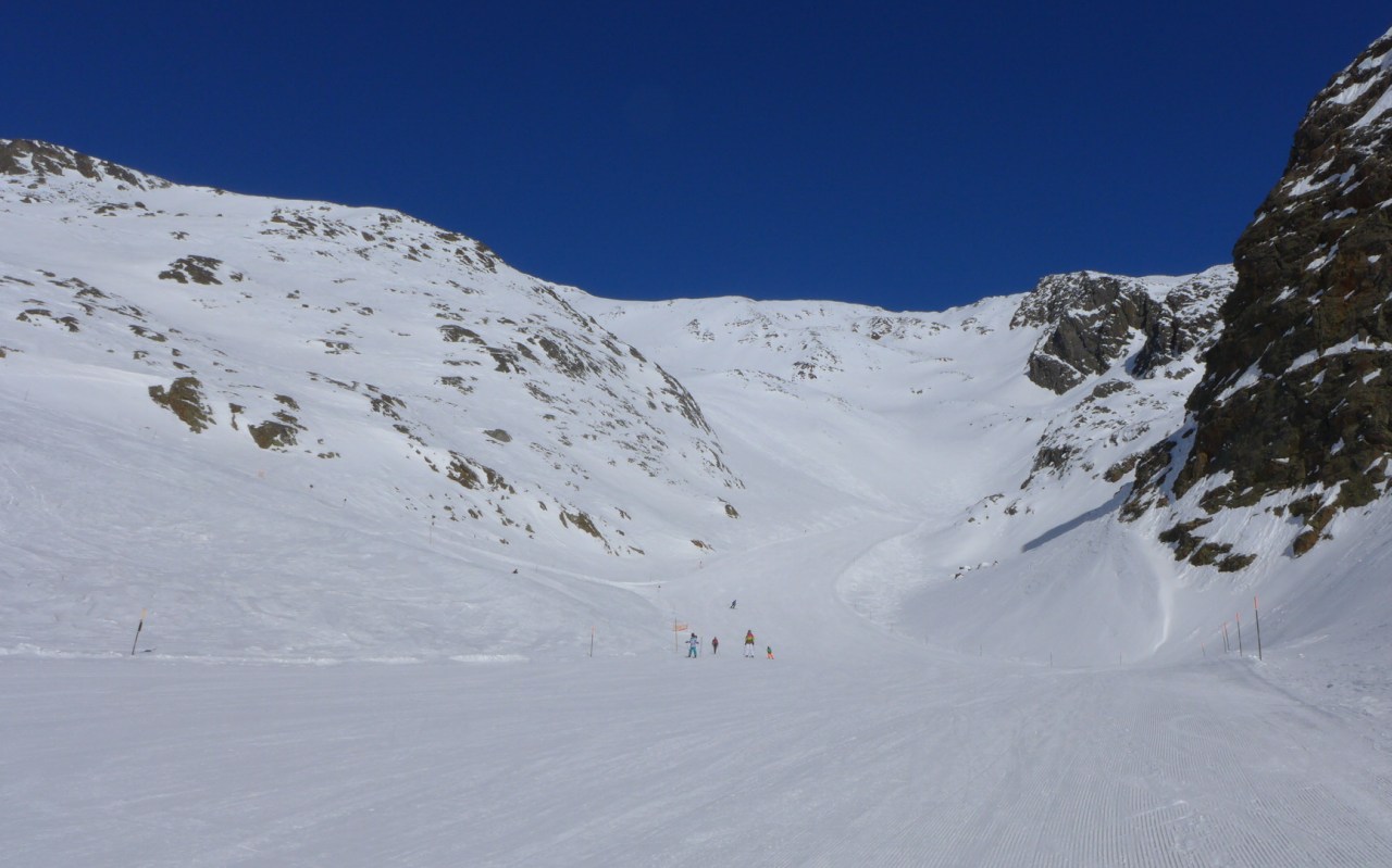 Dal ghiacciaio della Val Senales a Maso corto in otto chilometri di pista! La [b]Discesa Schmuggler[/b] parte dalla stazione di monte della Funivia dei ghiacciai. Si percorrono i primi 800 metri sul ghiacciaio con una pendenza inizialmente media che va via via attenuandosi. Dopo aver lasciato sulla nostra sinistra l'arrivo delle seggiovie "Lago Ghiacciato 1 e 2" proseguiamo per un centinaio di metri su un tratto semipiano per poi girare decisamente verso sinistra. Si scia una bella pendenza di solito con neve perfetta. Qui si lasciano correre gli poichè al termine del muretto è meglio avere un po' di velocità per raggiungere la stazione di valle delle seggiovie "Lago Ghiacciato" e superarle.