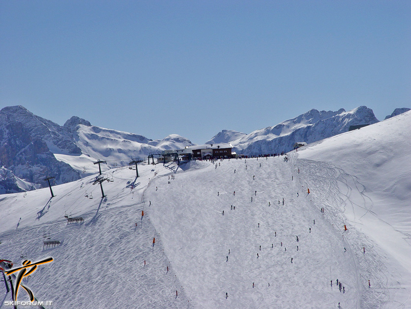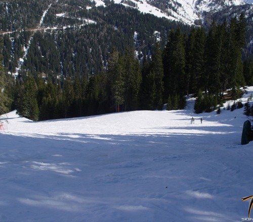 Le due varianti poi si riuniscono in un'unica pista che con un paio di cambio di pendenza divertenti torna a Pian Frataces. Questa pista è spesso molto affollata. A me piace farla verso fine stagione, con neve papposa e molle.