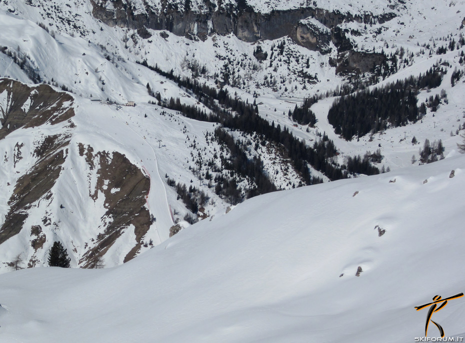 Pista nera nel comprensorio di Arabba. Scende dal monte Burz (il monte dove sale la seggiovia che parte dal paese) e presenta un impegnativo e molto pendente muro centrale.