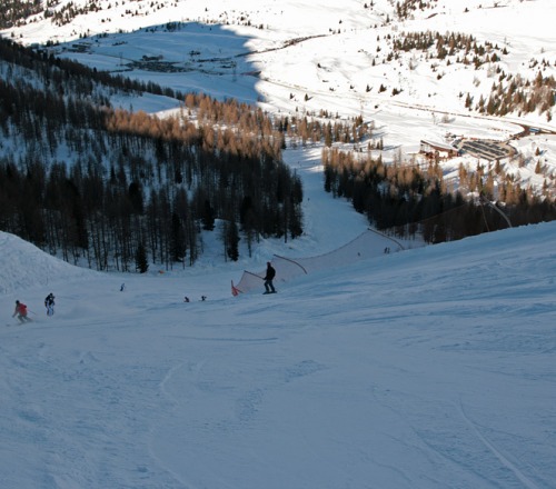 La pista parte con un muro molto largo di media pendenza. Superata la prima parte gli sciatori più esperti possono in corrispondenza di Forcella Pradazzo girare subito a sinistra e cimentarsi con la variante più impegnativa della pista chiamata "La Volata". Chi vuole farsi una sciata più rilassata continua per la pista che scende verso il Lago Cavia fino ad incontrare la variante facile sulla sinistra.