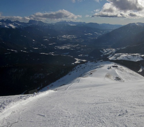 Si prosegue seguendo i cartelli "discesa a valle" e passando sotto le strutture delle cabinovie si scia su un bel muretto che immette in un lunghissimo tratto nel bosco in semipiano. Qui gli sciatori più esperti potrebbero annoiarsi ma l'ambiente è magico: siamo immersi nei boschi e nel silenzio di Maranza. Si incrocia una pista per slittini e per le passeggiate e si sbuca in vista del parcheggio degli impianti di risalita. Un ultimo bel pendio prima di arrivare nei pressi degli apres ski della località e tolti gli sci, attraversata la strada si torna alla partenza della cabinovia Bergbahn pronti per ritornare in quota.