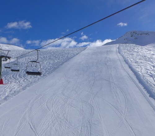 Scesi dalla seggiovia si lascia sulla sinistra un bellissimo rifugio e si giunge alla partenza della pista. Una bella pendenza da seguire con curvoni veloci ci porta al muro centrale della pista da fare con attenzione.