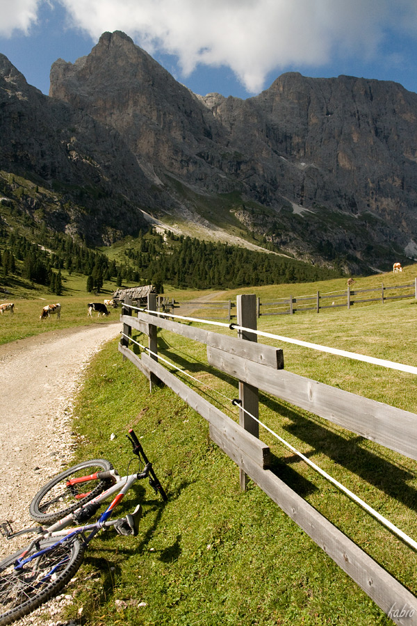Il sentiero 533 parte dal rifugio Sassopiatto e con una facile strada sterrata scende fino ad una malga. Qui si attraversa il ruscello e si entra nel recinto dei pascoli. La prima parte del sentiero si fa portando la bici a mano, saranno circa 50 metri, poi si sbuca in un divertentissimo prato che se ben interpretato (attenzione ci sono i "canali di terra" fatti dall'acqua da evitare altrimenti il frontflip è assicurato) sa regalare una bella discesa.