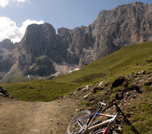 Dal rifugio Micheluzzi si torna a Campitello di Fassa percorrendo la strada sterrata percorsa in salita: attenzione ai numerosi turisti ed alle jeep navetta che possono sbucare improvvisamente dopo le curve.