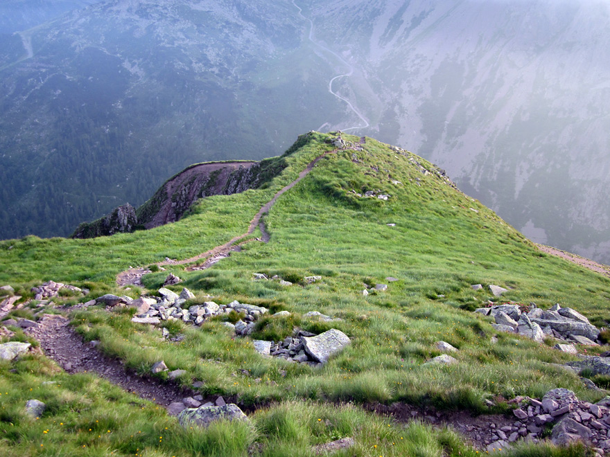 Si prosegue seguendo la sponda di uno dei due laghi e si riprende la salita verso la Cavallazza. Il sentiero si fa ripido e faticoso. Dopo qualche minuto si iniziano a vedere le Dolomiti della Marmolada e le piste da sci di San Martino di Castrozza. A pochi metri dalla vetta si lascia il sentiero e per una evidente traccia si sale alla croce di vetta della Cavallazza. Dalla cima si vedono le tracce delle trincee delle Grande Guerra. Il panorama sulle Pale di San Martino è spettacolare ed in particolare si gode di un ottimo panorama su Mulaz, Cimon della Pala e Bureloni.