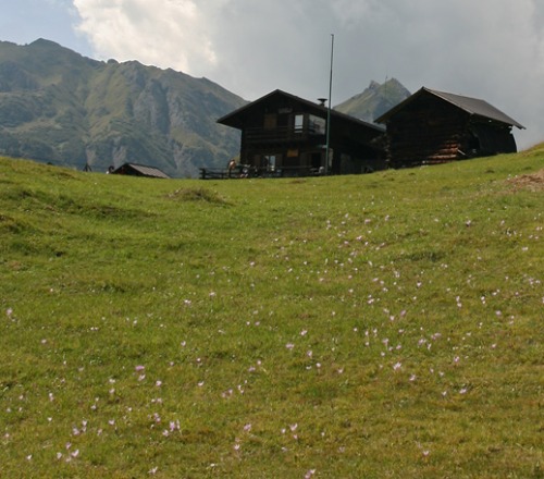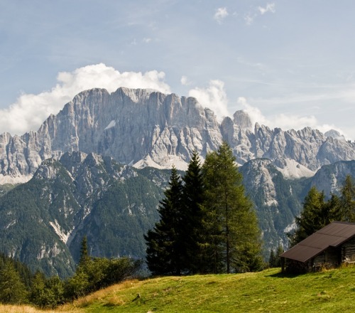 Il sentiero diventa finalmente più divertente e salendo per il bosco in circa mezz'ora porta allo spettacolare alpeggio dei Tabià di Ciamp nel quale si trovano diversi piccoli fienili e baite e nel punto più panoramico il Rifugio Sasso Bianco.