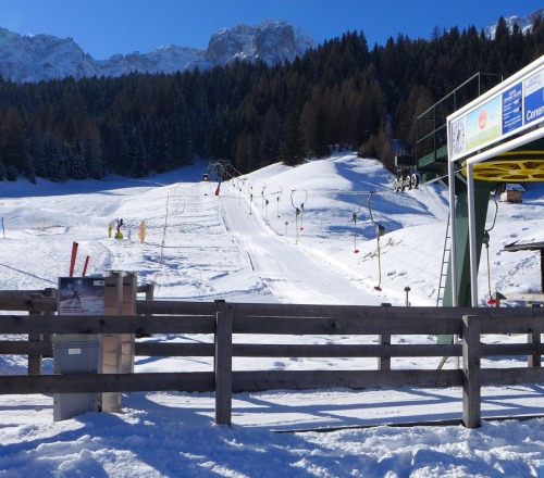 Il comprensorio sciistico è costituito da un campo scuola a valle servito da uno skilift e dalla seggiovia 4 posti coperta Col d'la Tenda. Il lungo impianto offre tracciati per tutti i gusti: la rossa Tre Picchi è la discesa principale, nella parte alta presenta cambi di direzione molto accentuati per poi diventare più sinuosa e tecnica, in alternativa alla parte alta c'è l'Europa Unica, un difficile e impegnativo muro, mentre nel tratto centrale si può variare con la Prà dei Guardiani, tracciato speculare alla rossa ma bene più difficile. Da non sottovalutare anche la Tabiadel che nel tratto finale offre un panorama sul centro abitato.